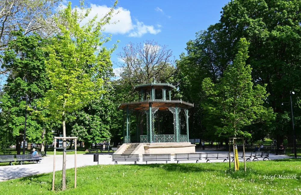Veľká časť Mestského parku je ohradená elegantným a kovaným plotom.